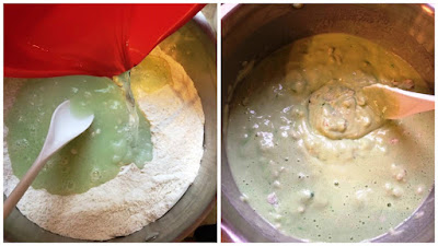 2. Mix water and cooking oil together in a separate bowl. Mix in food colouring in this step if you are using it.