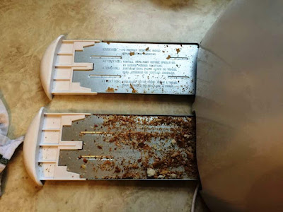 Step 4: Now for the fun part! I bought this (expensive enough) chalk marker at Michaels ($5.79) by Craft Smart and I have to say, I wasn't overly impressed with it. I would compare it to using paint - you need to keep fluid motions and not stop when drawing or it's hard to make end and beginning lines look similar. I'm right handed, and I had to work from left to right and top to bottom because chalk pens do smudge. It did the job fine but maybe a bit more practice and I can get it to look the way I want. I also decided to not fill my design in with this chalk marker because I didn't want to "waste" it. I opted to fill in the words with plain old chalk and used a blow dryer to remove the excess chalk. For colouring the shapes, I tried the very inexpensive chalk crayons I bought from a dollar store ($2.50), and they worked the best of everything and next time I'd like to fill letters with these. The colours came out vibrant and with nice textures. Using my fingers I smeared chalk from my "carbon copy" template around the outside of the chalkboard to finish the look. All the chalk pens and crayons claim to be washable from a chalkboard with a bit of soapy water, so we shall see about that.