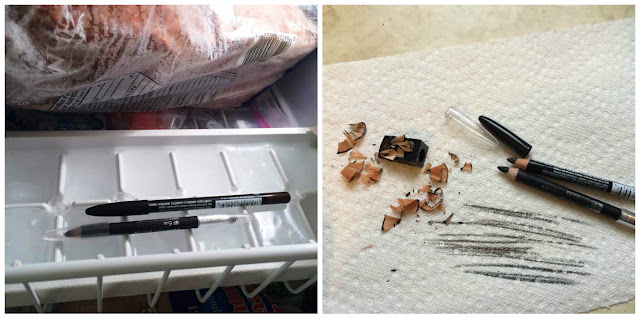 Step 4: Now for the fun part! I bought this (expensive enough) chalk marker at Michaels ($5.79) by Craft Smart and I have to say, I wasn't overly impressed with it. I would compare it to using paint - you need to keep fluid motions and not stop when drawing or it's hard to make end and beginning lines look similar. I'm right handed, and I had to work from left to right and top to bottom because chalk pens do smudge. It did the job fine but maybe a bit more practice and I can get it to look the way I want. I also decided to not fill my design in with this chalk marker because I didn't want to "waste" it. I opted to fill in the words with plain old chalk and used a blow dryer to remove the excess chalk. For colouring the shapes, I tried the very inexpensive chalk crayons I bought from a dollar store ($2.50), and they worked the best of everything and next time I'd like to fill letters with these. The colours came out vibrant and with nice textures. Using my fingers I smeared chalk from my "carbon copy" template around the outside of the chalkboard to finish the look. All the chalk pens and crayons claim to be washable from a chalkboard with a bit of soapy water, so we shall see about that.