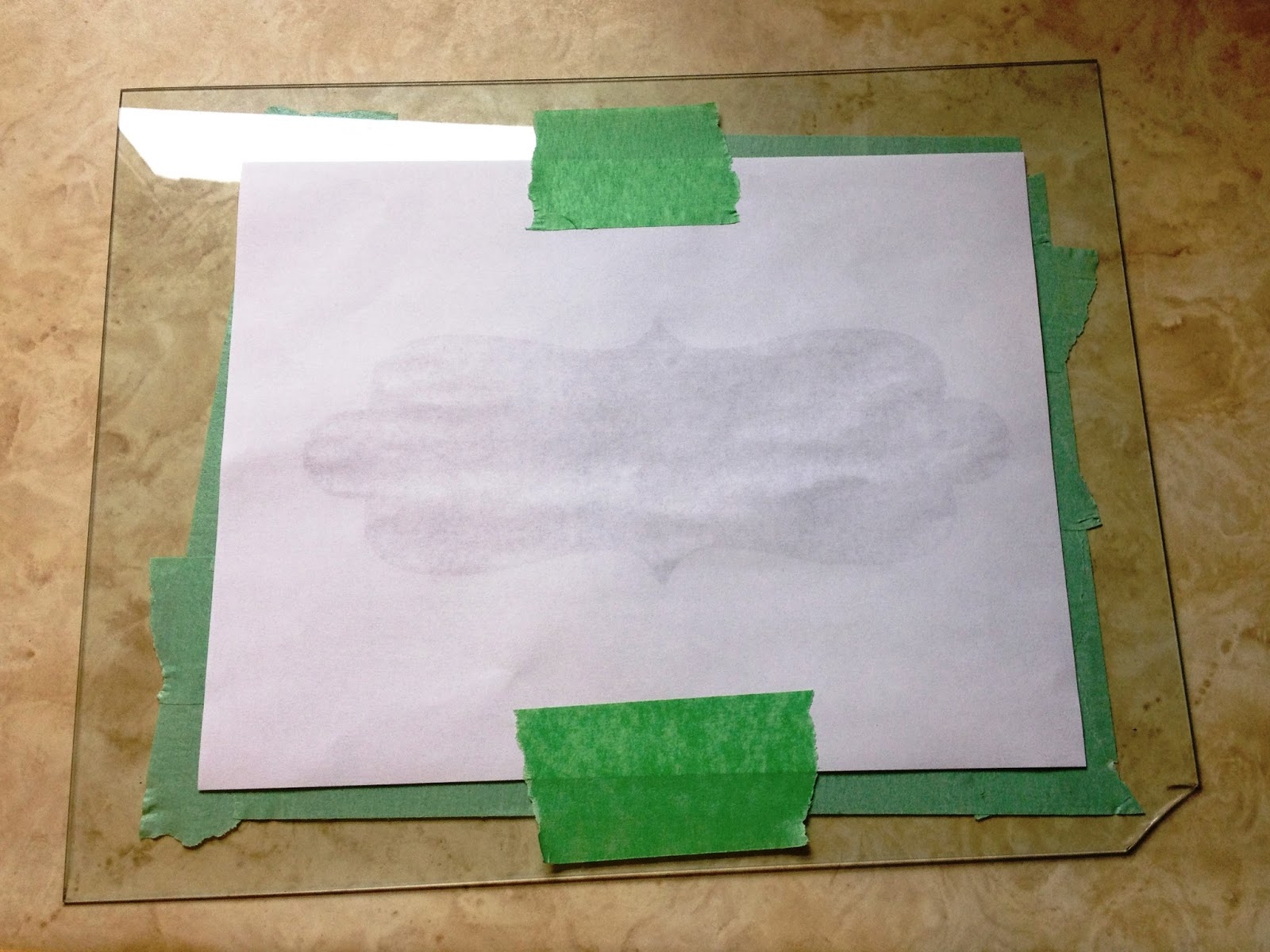 Tape the template to the back so it can be traced onto the painter's tape: