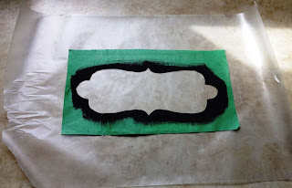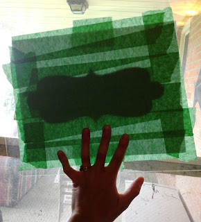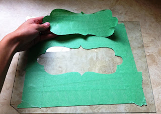 6. VERY CAREFULLY peel the stencil off the glass, trying not to stretch the tape or it won't lay flat on what you're painting. Make sure the edges of the stencil are flat against the surface or paint will get behind the tape.