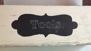 After my first chalkboard paint project as seen here was complete, I had lots of paint left over and wanted to try something else with it. The old wooden caddy I found at a yard sale and knew my garden tools would fit perfectly. Since chalk is non-permanent, I won't take this outside but instead use the caddy to store the tools inside.