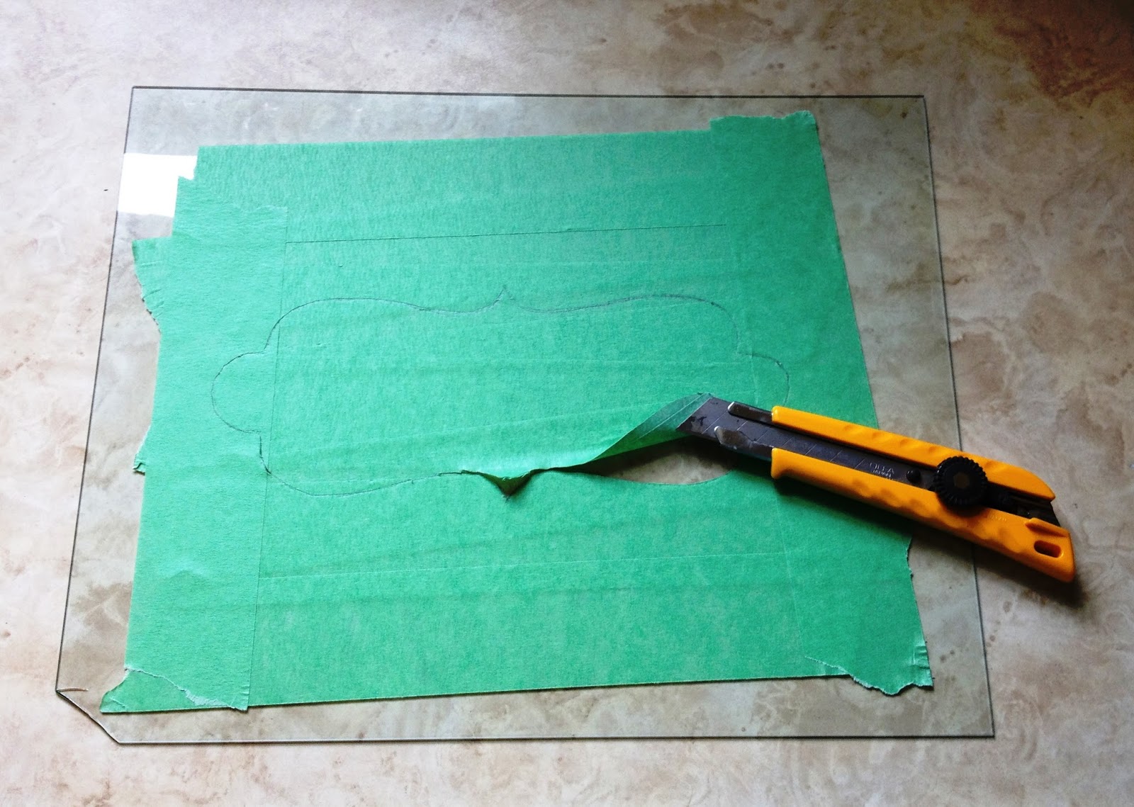 1. Cover the glass with painter's tape: