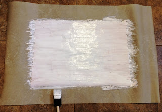 Lay newspaper or parchment paper down and spread the Medium over all edges. You need to spread down enough to cover the image completely - you shouldn't see much of the image through the Medium. My image was about 11"x17" and I used almost a whole bottle of Medium.